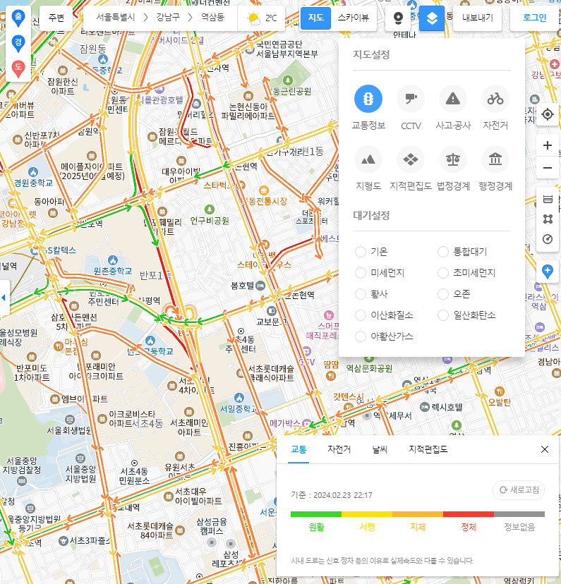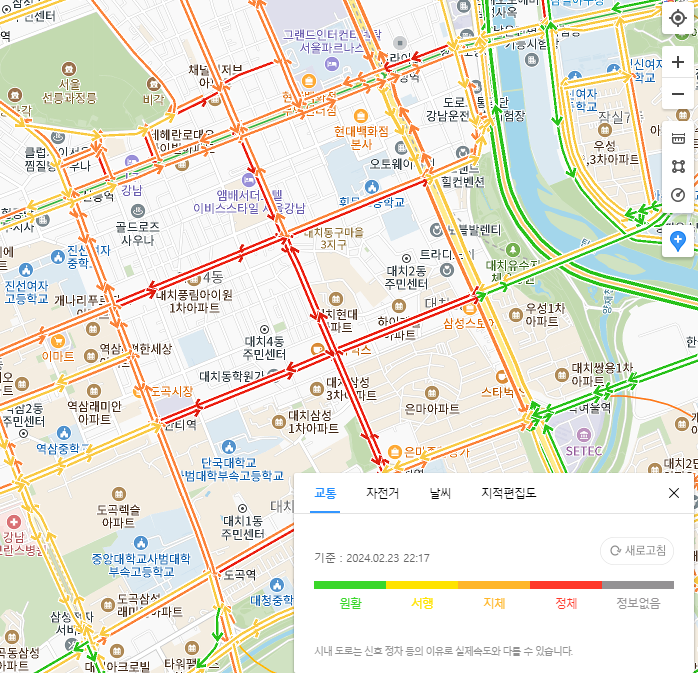 또 재미난것은 다음지도 바로가기에서 제공을 해주고 있습니다. 바로 교통량을 볼 수 있다는것이죠. 현재 오후 10시 17분 기준으로 도곡로 테헤란로 쪽은 교통이 매우 혼잡한 것을 볼 수 있습니다. 아마 오늘 글 쓰는 날이 금요일이라서 더 심한게 아닌가 싶네요. 이런 식으로 이용하다보면 참 재미있다는 생각이 들기도 합니다. 여러분은 안그런가요? 이상으로 글을 마칩니다. 다음지도 바로가기 많은 이용부탁드리겠습니다. 감사합니다.