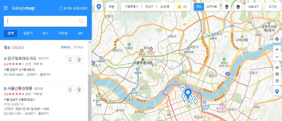 2. 다음지도 바로가기 검색