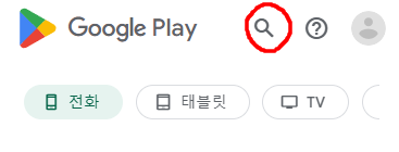 휴대폰으로 접속하면 위 사진처럼 나오게 될텐데요. 여기서 "앱 및 게임 검색" 창이나 "돋보기 버튼"을 클릭해서 여러분이 찾고 싶은 어플을 검색해보세요.