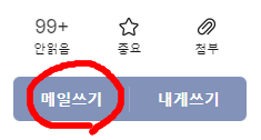 이번에는 간략하게나마 다음메일 바로가기를 사용하는 방법을 알려드리겠습니다. 컴퓨터에 익숙하신 분들은 그냥 무시하셔도 좋지만 초보이신 분들은 이 글을 참고하시면 조금이나마 도움이 되실수도 있을 것 같네요. 먼저, 다음메일을 비롯한 모든 메일에서 가장 중요한건 메일쓰기(발신), 수신 기능이죠. 메일함에 들어가면 "메일쓰기'라는 버튼이 바로 보입니다.